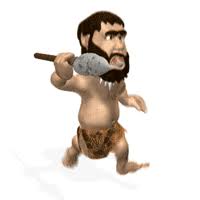 cavernas, caçando e plantando para comer, se vestindo com peles de